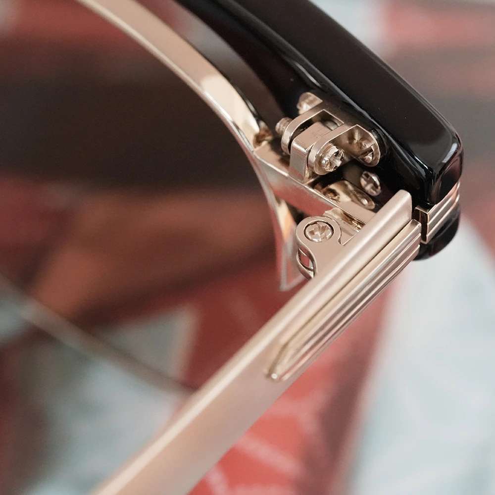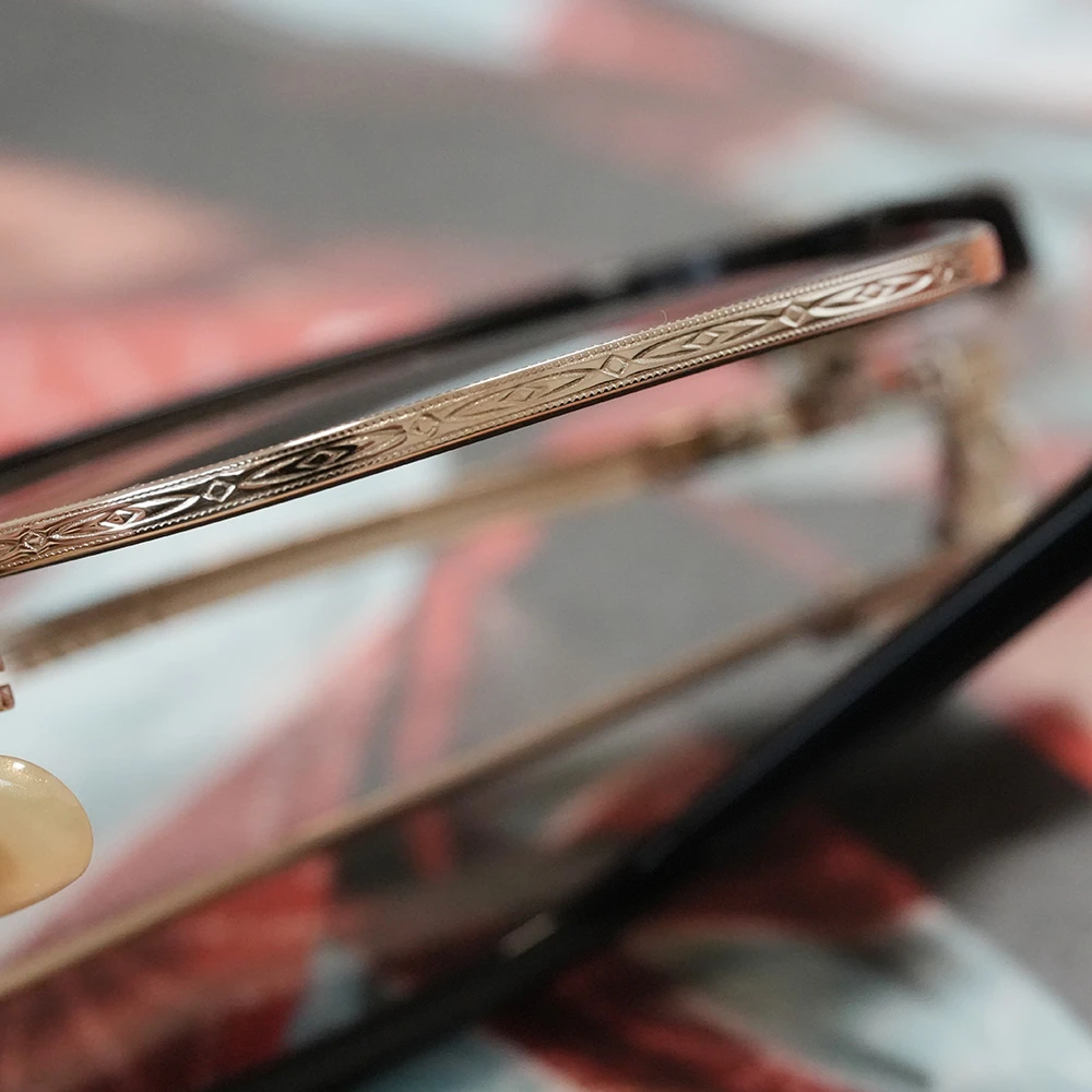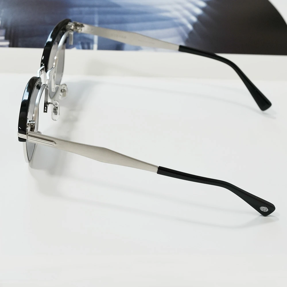 ベースとなるメタルパーツはチタンを使用、メタルテンプルも太くデザインされており安定感もしっかり、軽量で掛け心地にもこだわっています。